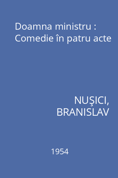 | Titlu | Doamna ministru : Comedie în patru acte |