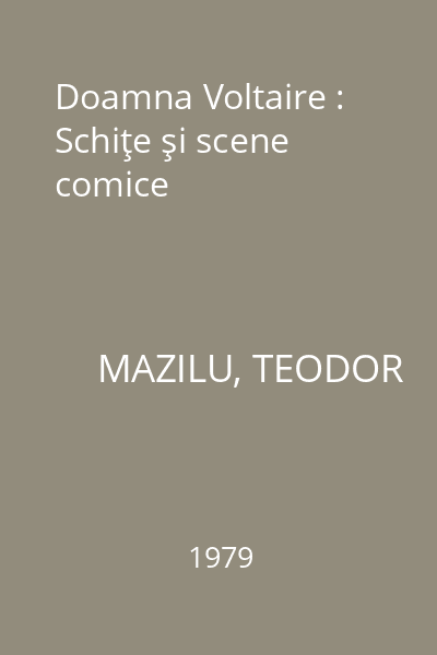 | Titlu | Doamna Voltaire : Schiţe şi scene comice |