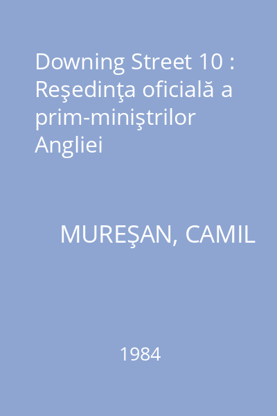 | Titlu | Downing Street 10 : Reşedinţa oficială a prim-miniştrilor Angliei |