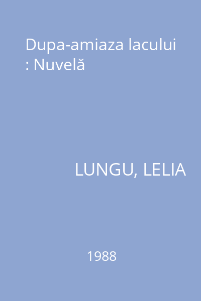 | Titlu | Dupa-amiaza lacului : Nuvelă |
