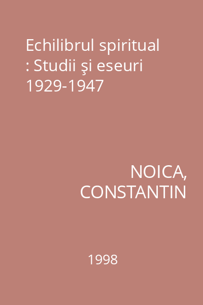 | Titlu | Echilibrul spiritual : Studii şi eseuri 1929-1947 |