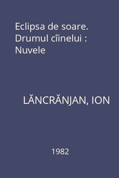 | Titlu | Eclipsa de soare. Drumul cîinelui : Nuvele |