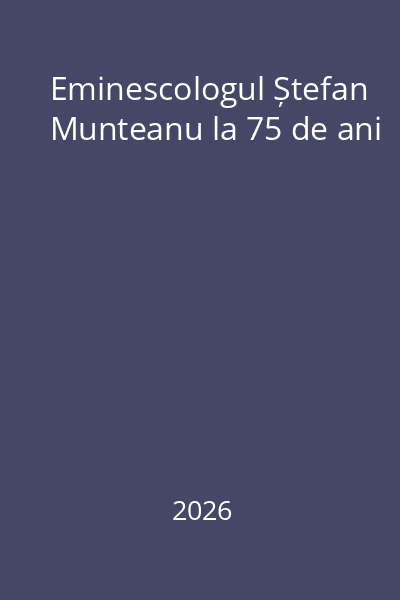 | Titlu | Eminescologul Ștefan Munteanu la 75 de ani |