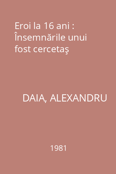 | Titlu | Eroi la 16 ani : Însemnările unui fost cercetaş |