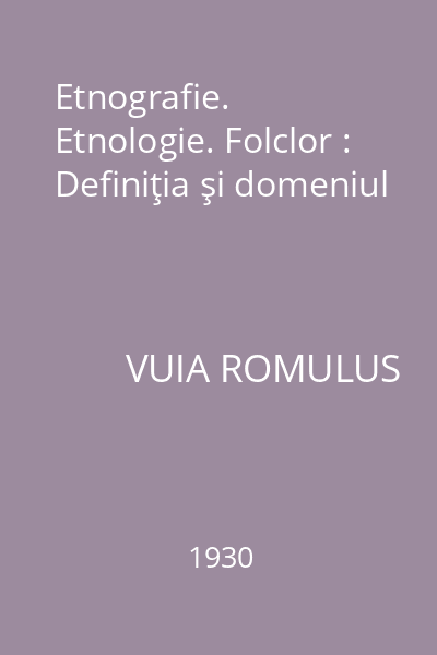 | Titlu | Etnografie. Etnologie. Folclor : Definiţia şi domeniul |