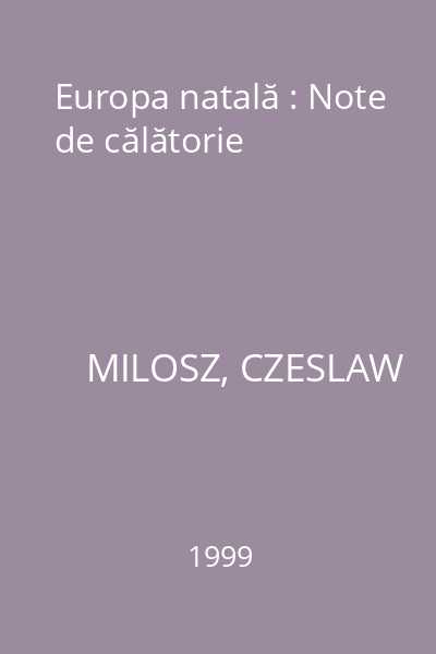 | Titlu | Europa natală : Note de călătorie |