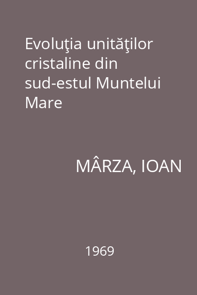| Titlu | Evoluţia unităţilor cristaline din sud-estul Muntelui Mare |