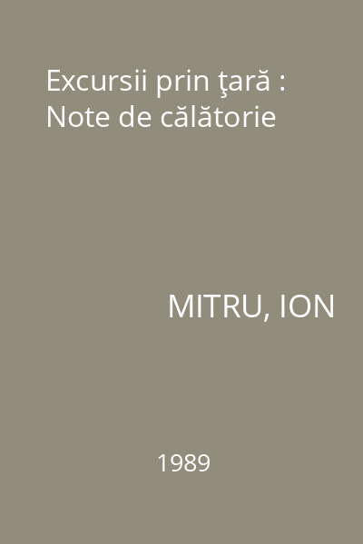 | Titlu | Excursii prin ţară : Note de călătorie |