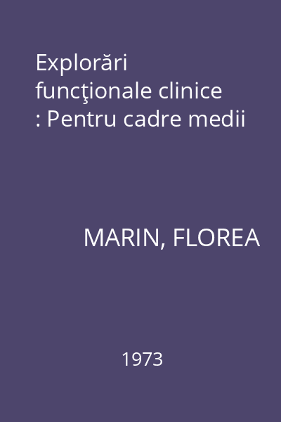| Titlu | Explorări funcţionale clinice : Pentru cadre medii |