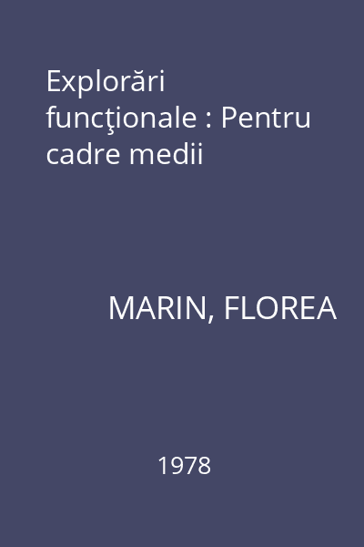 | Titlu | Explorări funcţionale : Pentru cadre medii |