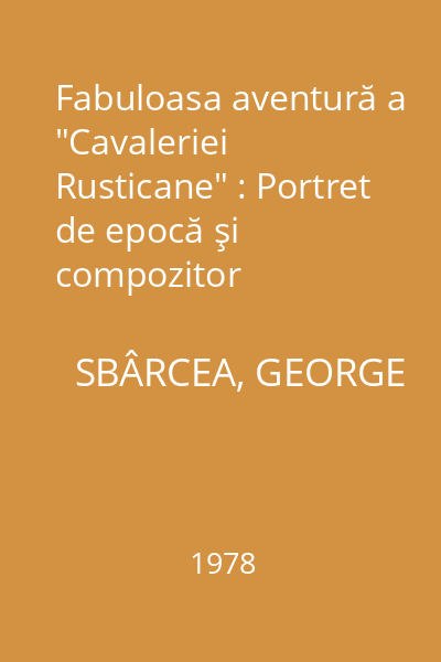 | Titlu | Fabuloasa aventură a "Cavaleriei Rusticane" : Portret de epocă şi compozitor |