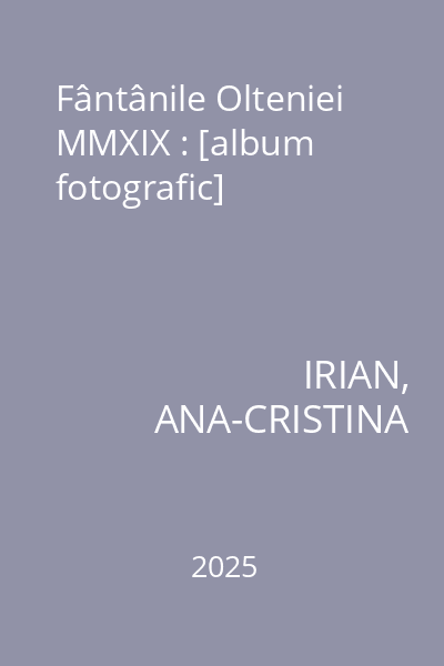 | Titlu | Fântânile Olteniei MMXIX : [album fotografic] |