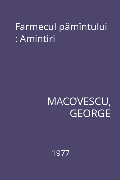 | Titlu | Farmecul pămîntului : Amintiri |