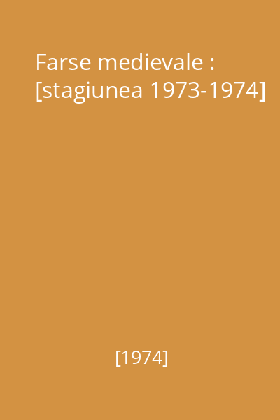 | Titlu | Farse medievale : [stagiunea 1973-1974] |