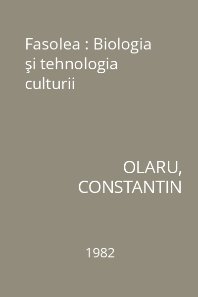 | Titlu | Fasolea : Biologia şi tehnologia culturii |
