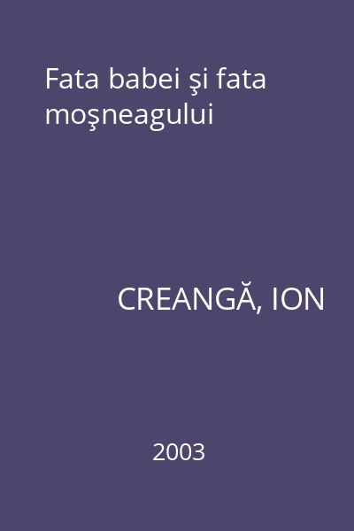| Titlu | Fata babei şi fata moşneagului |