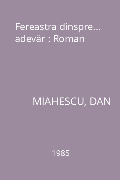 | Titlu | Fereastra dinspre... adevăr : Roman |