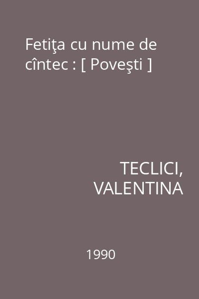 | Titlu | Fetiţa cu nume de cîntec : [ Poveşti ] |