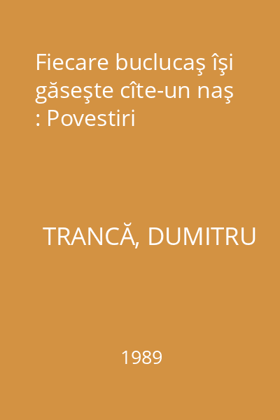 | Titlu | Fiecare buclucaş îşi găseşte cîte-un naş : Povestiri |