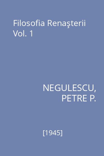 | Titlu | Filosofia Renaşterii Vol. 1 |