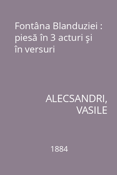 | Titlu | Fontâna Blanduziei : piesă în 3 acturi şi în versuri |