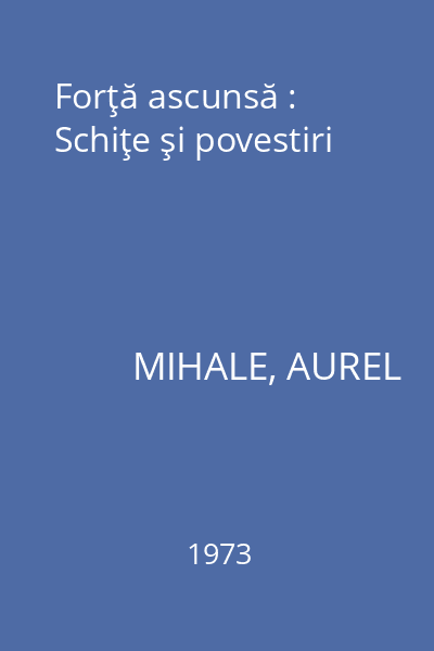 | Titlu | Forţă ascunsă : Schiţe şi povestiri |