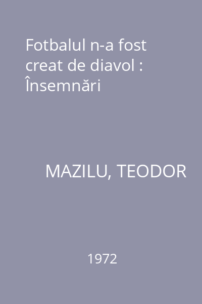 | Titlu | Fotbalul n-a fost creat de diavol : Însemnări |