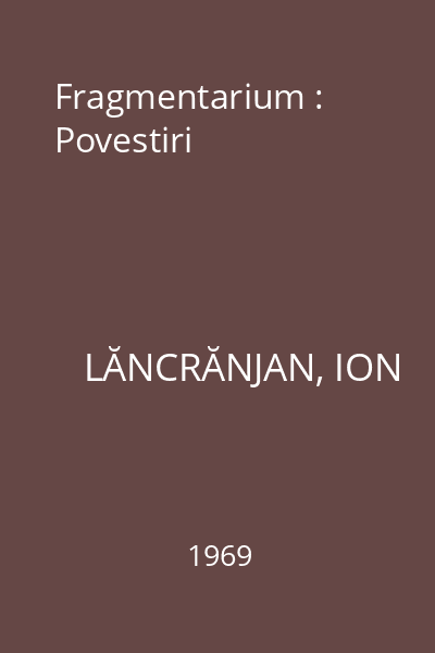 | Titlu | Fragmentarium : Povestiri |