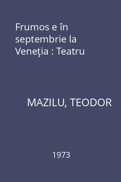 | Titlu | Frumos e în septembrie la Veneţia : Teatru |