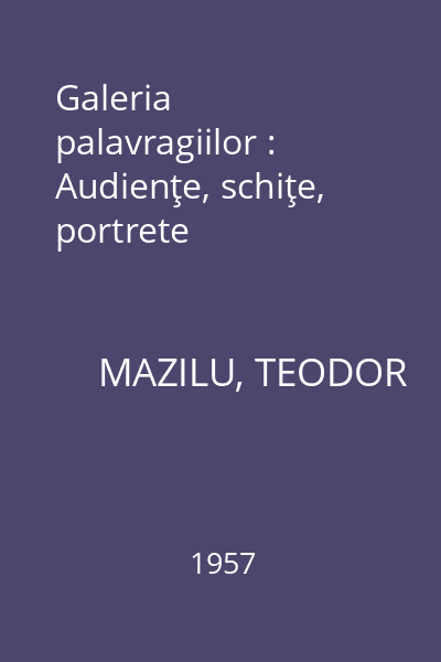 | Titlu | Galeria palavragiilor : Audienţe, schiţe, portrete |