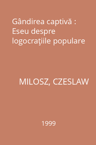 | Titlu | Gândirea captivă : Eseu despre logocraţiile populare |