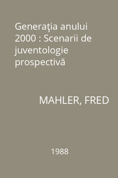 | Titlu | Generaţia anului 2000 : Scenarii de juventologie prospectivă |