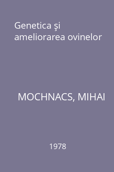 | Titlu | Genetica şi ameliorarea ovinelor |
