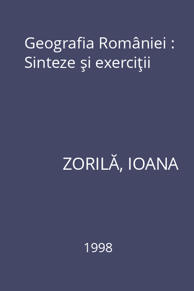 | Titlu | Geografia României : Sinteze şi exerciţii |