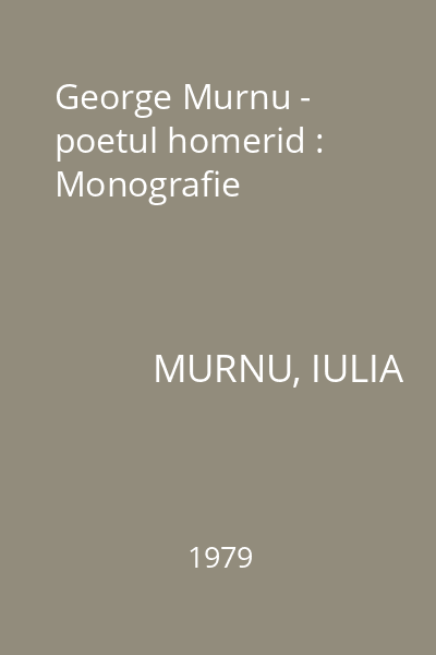 | Titlu | George Murnu - poetul homerid : Monografie |