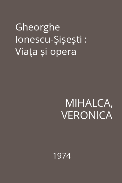 | Titlu | Gheorghe Ionescu-Şişeşti : Viaţa şi opera |