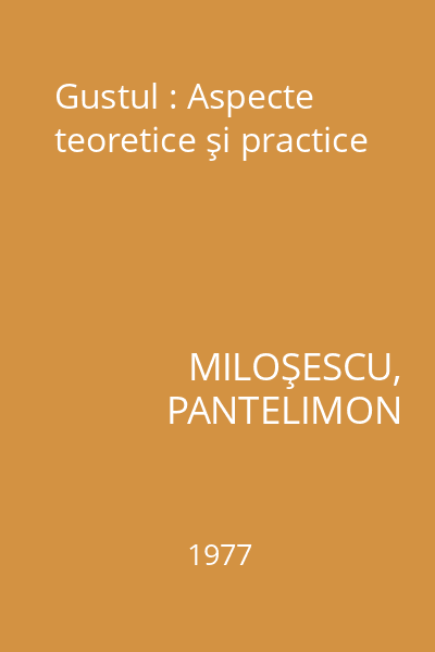 | Titlu | Gustul : Aspecte teoretice şi practice |