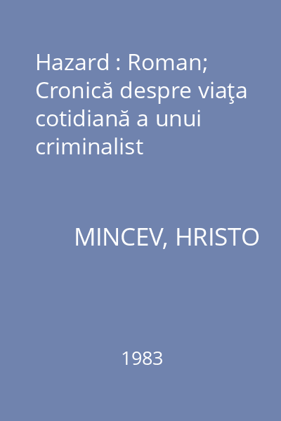 | Titlu | Hazard : Roman; Cronică despre viaţa cotidiană a unui criminalist |