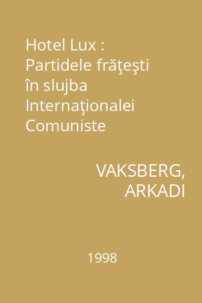 | Titlu | Hotel Lux : Partidele frăţeşti în slujba Internaţionalei Comuniste |