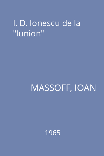 | Titlu | I. D. Ionescu de la "Iunion" |