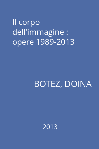 | Titlu | Il corpo dell'immagine : opere 1989-2013 |
