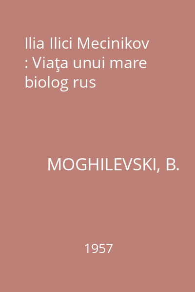 | Titlu | Ilia Ilici Mecinikov : Viaţa unui mare biolog rus |
