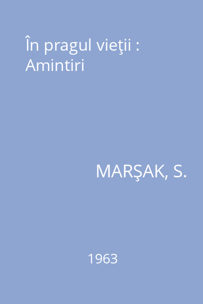 | Titlu | În pragul vieţii : Amintiri |