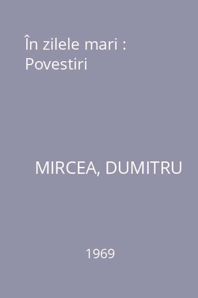 | Titlu | În zilele mari : Povestiri |