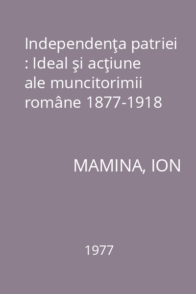 | Titlu | Independenţa patriei : Ideal şi acţiune ale muncitorimii române 1877-1918 |