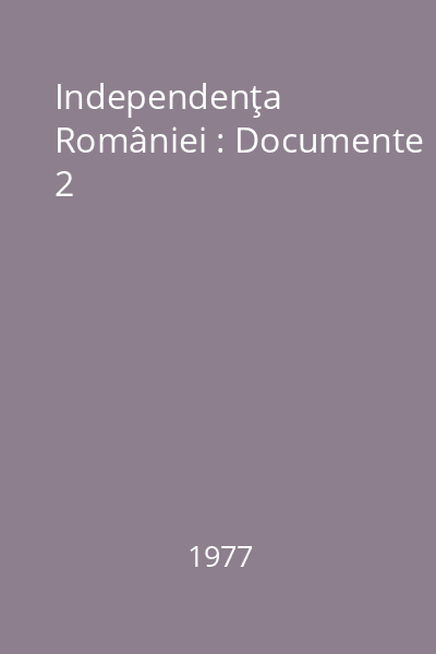 | Titlu | Independenţa României : Documente 2 |