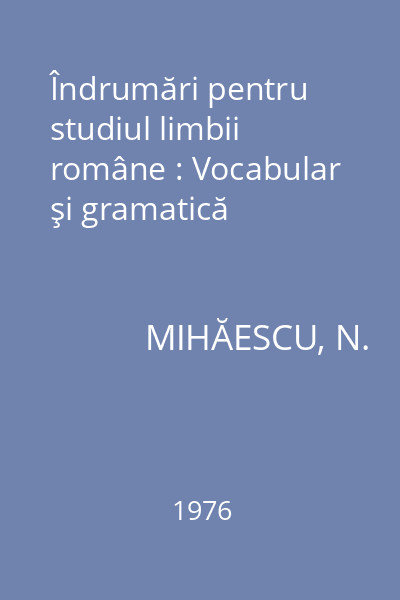 | Titlu | Îndrumări pentru studiul limbii române : Vocabular şi gramatică |