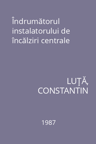 | Titlu | Îndrumătorul instalatorului de încălziri centrale |