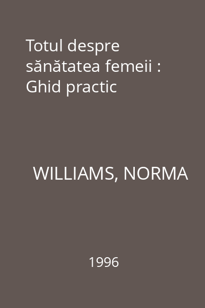 | Alte informaţii la titlu | ghid complet pentru calmarea furtunii hormonale și restabilirea naturală a sănătății |