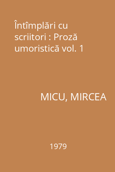 | Titlu | Întîmplări cu scriitori : Proză umoristică vol. 1 |